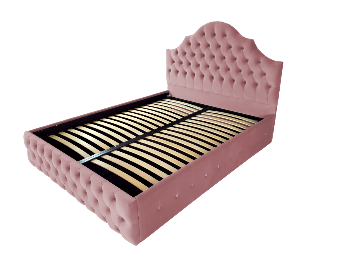 Pat tapitat Sophia ,120x200cm,somiera metalica rabatabila,spatiu depozitare,roz