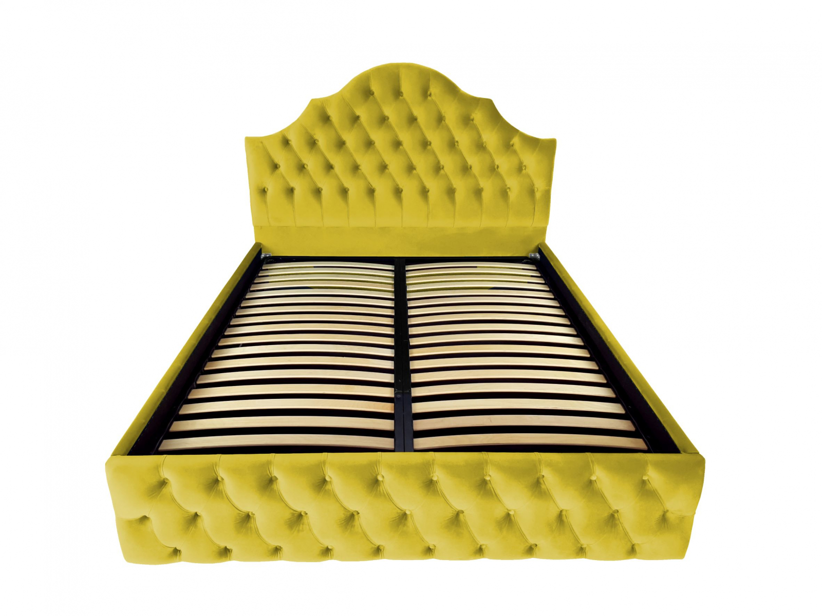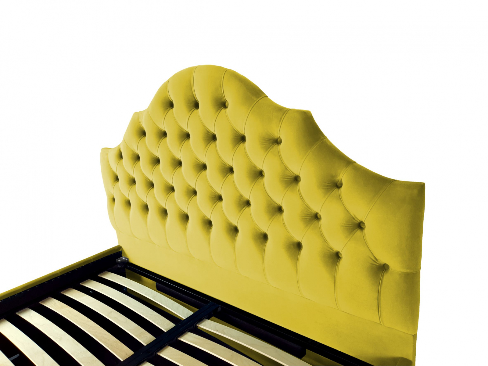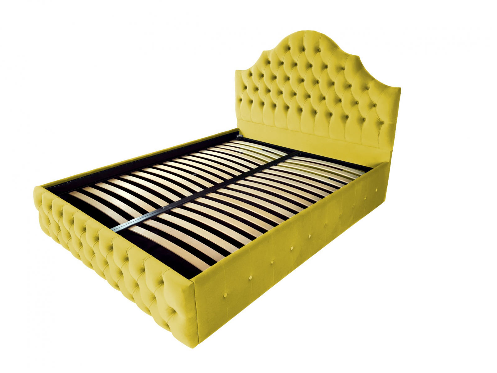 Pat tapitat Sophia ,120x200cm,somiera metalica rabatabila,spatiu depozitare,mustar