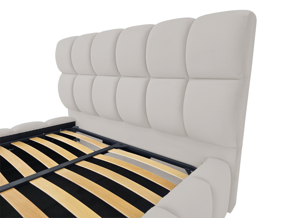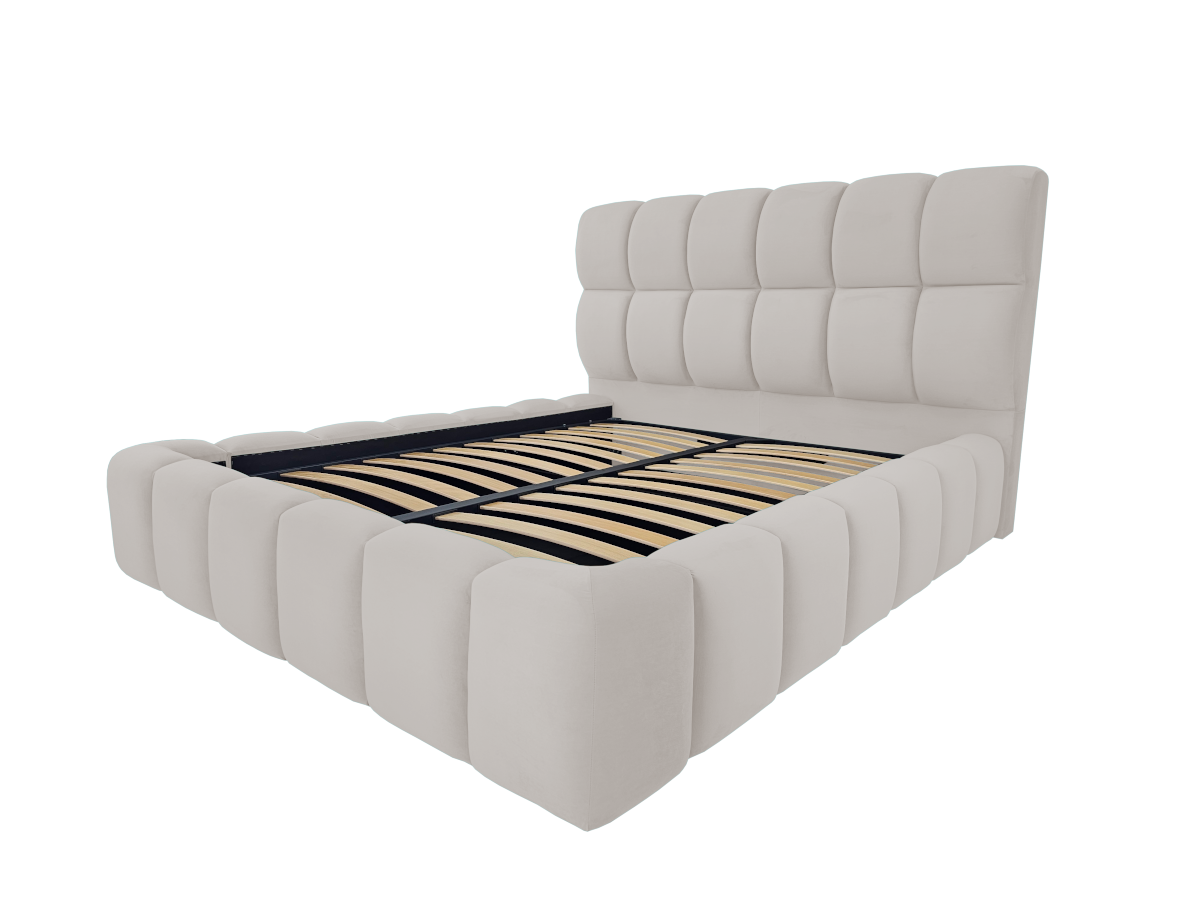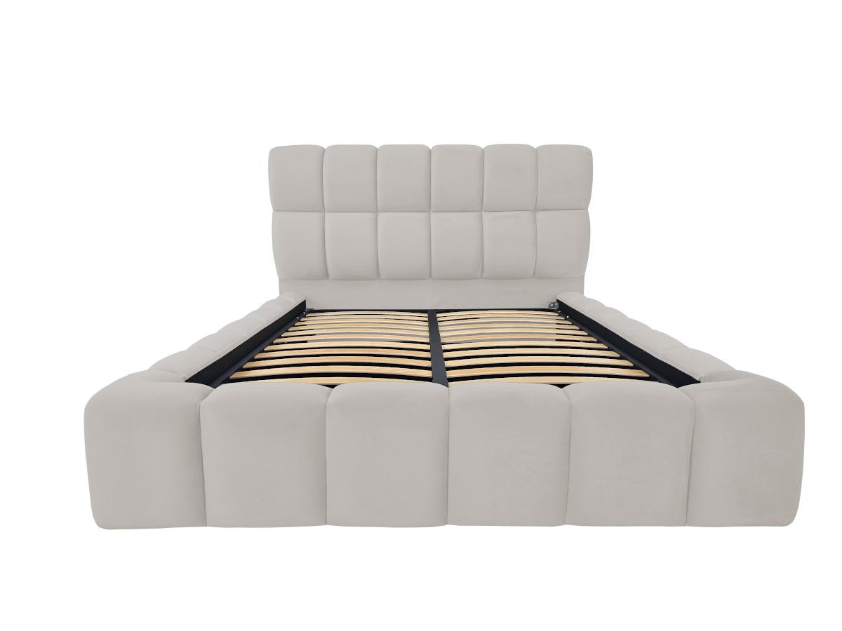 Pat tapitat Velare ,140x200cm,somiera metalica rabatabila,spatiu depozitare,crem prafuit