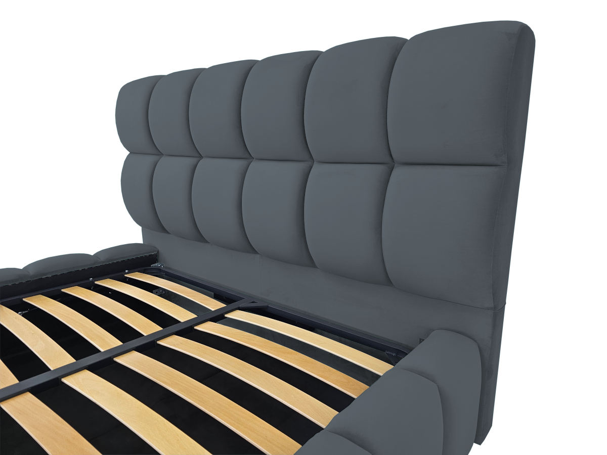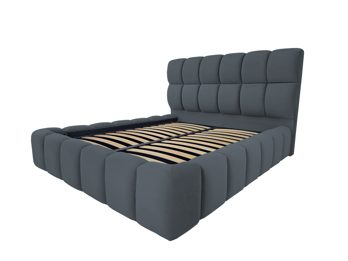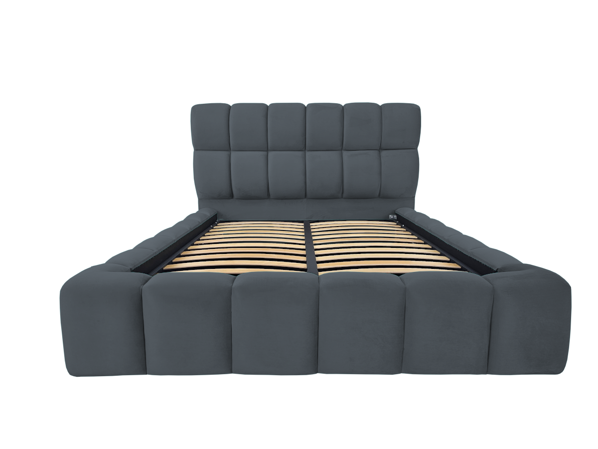 Pat tapitat Velare ,140x200cm,somiera metalica rabatabila,spatiu depozitare,gri