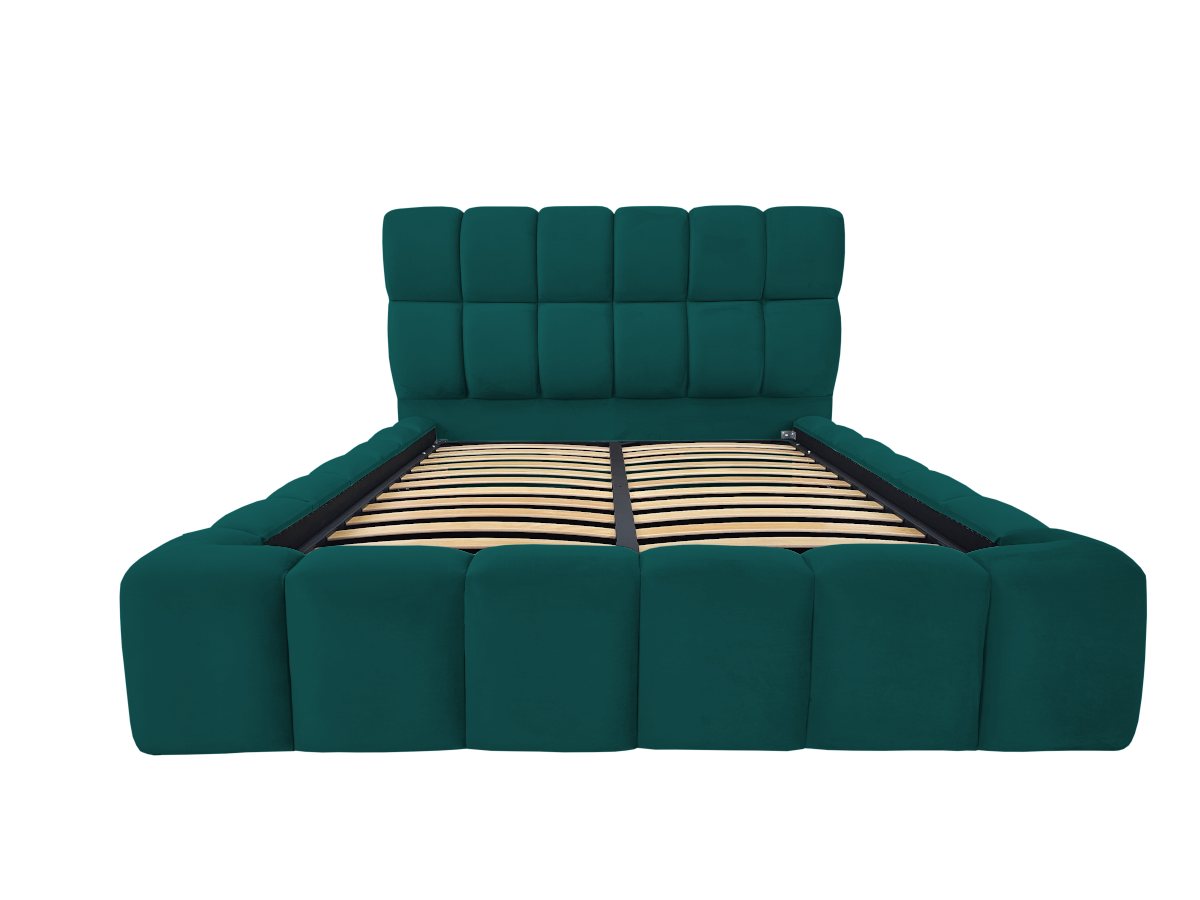 Pat tapitat Velare ,140x200cm,somiera metalica rabatabila,spatiu depozitare,verde