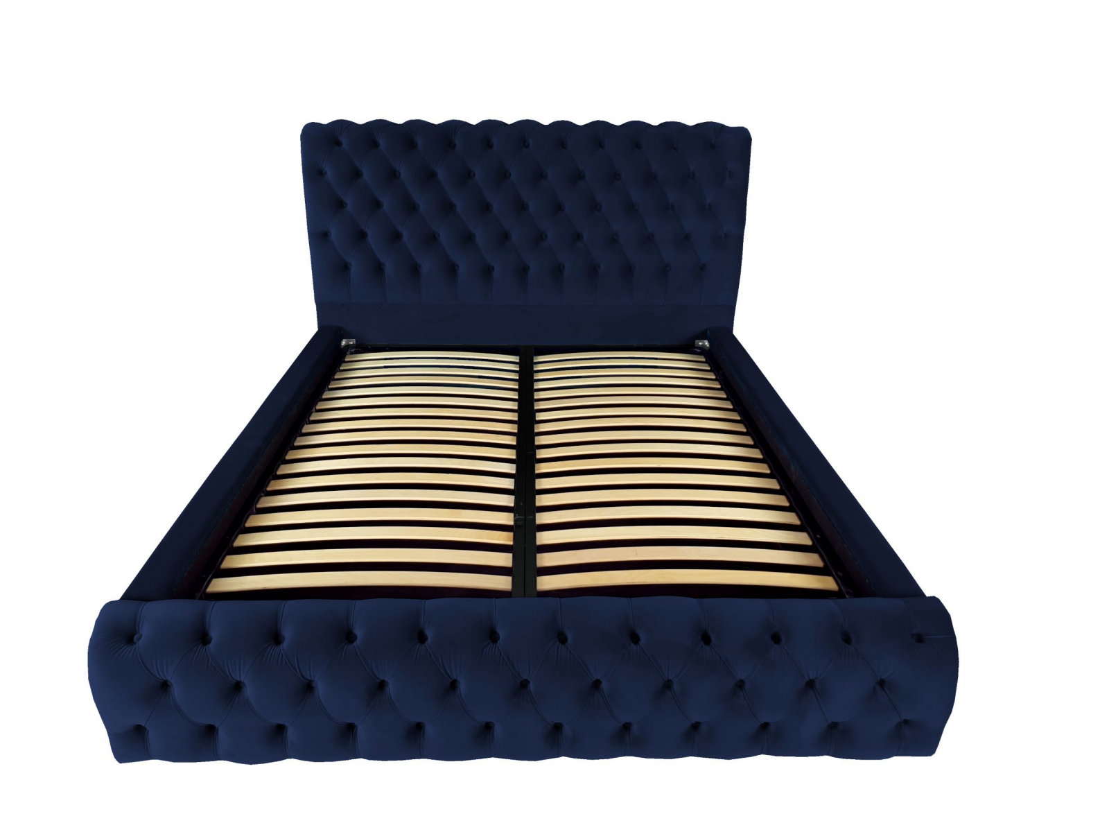Pat tapitat Verona ,120x200cm,somiera metalica rabatabila,spatiu depozitare,bleumarin