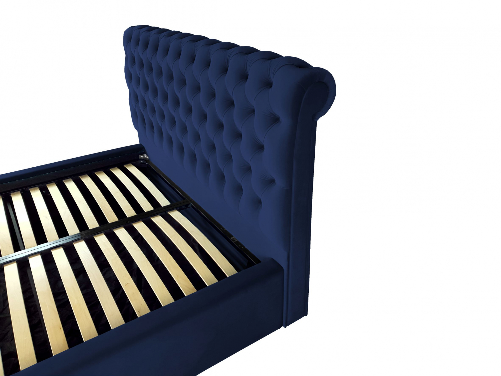 Veti fi captivat de aspectul sau unic și elegant. Rama patului este acoperita cu o tesatura moale catifelata. Un model de pat in stilul Chesterfield, tapitat in catifele moi si culori vibrante, perfect pentru un dormitor elegant.  Este livrat cu somiera rabatabila cu spatiu pentru depozitare sub saltea.